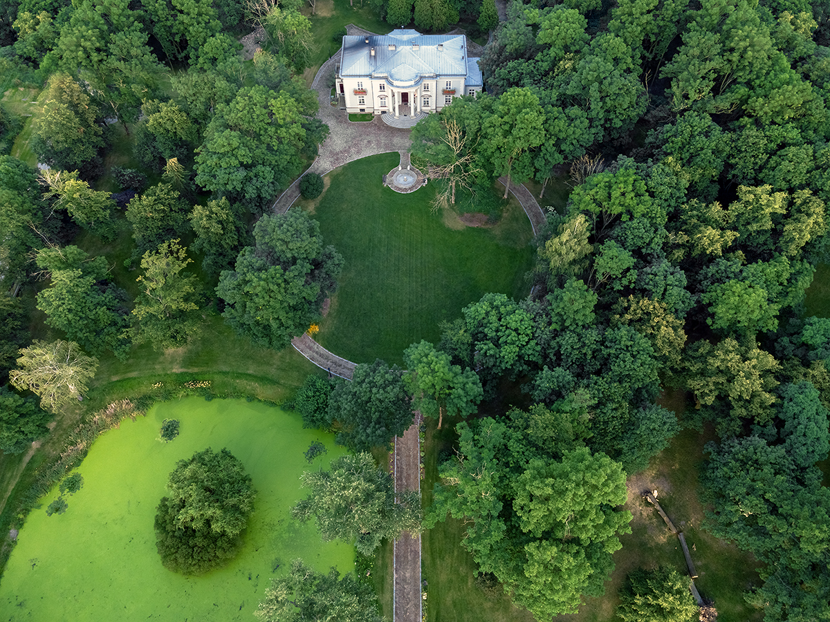 Neoklassizistisches Herrenhaus in der Woiwodschaft Masowien, nördlich von Warschau. Erbaut 1884 für die Familie Marchwicki nach einem Entwurf des Warschauer Architekten Leandro Marconi. In den letzten Jahren umfassend saniert. Privatgrundstück.