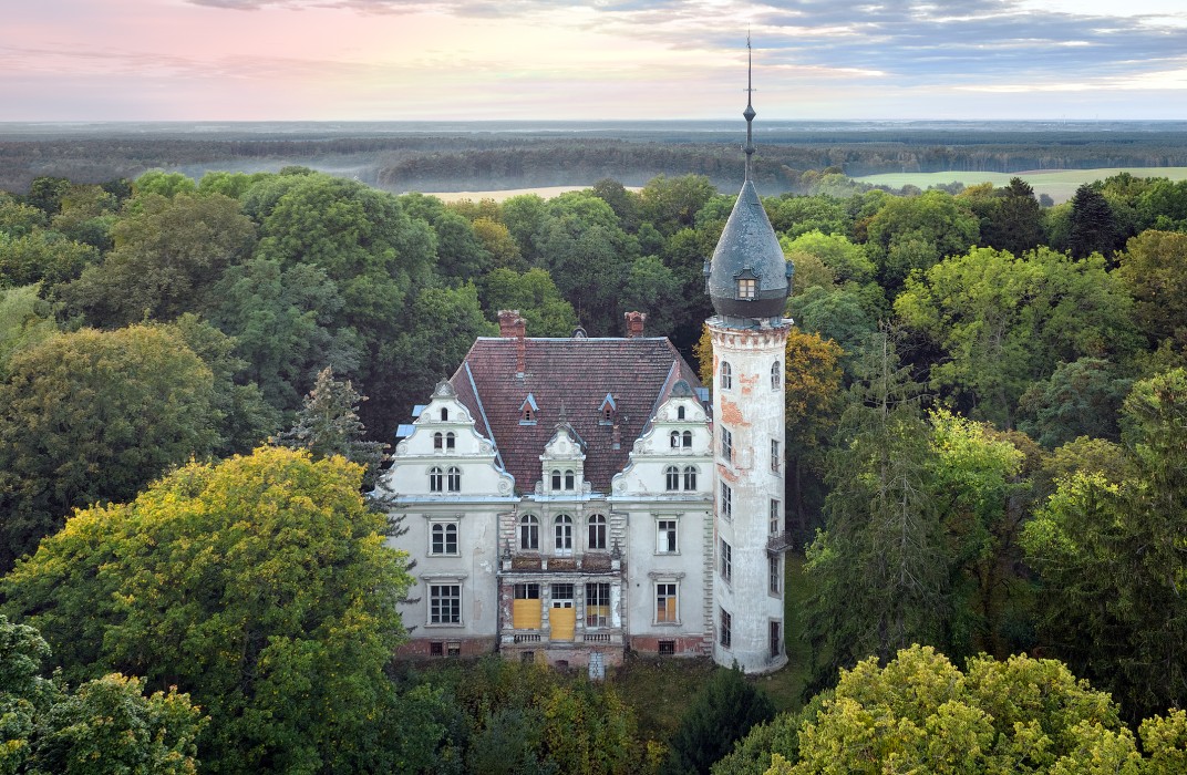 The palace with the distinctive high stair tower and final onion dome dates back to 1880. It was built for the Silesian noble family von Wallenberg.