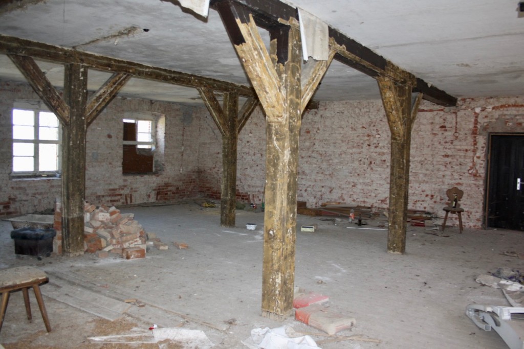 Das Haus steht seit vielen Jahren leer. Die Mißnutzung und mangelnde Instandhaltung während der DDR Zeit, sowie der lange Leerstand, haben ihre Spuren hinterlassen. Jedoch scheint die Substanz für eine Sanierung noch recht ordentlich zu sein.