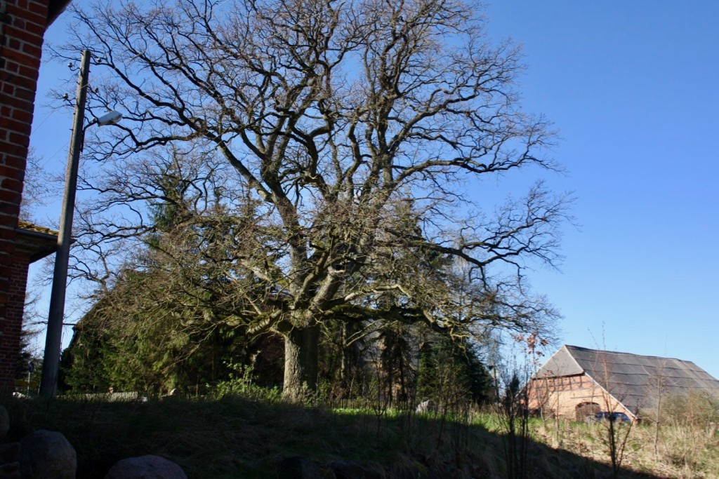 Das Grundstück grenzt an den Dorfteich und hat mit einer sehr alten Eibe und zwei starken Eichen auch noch einen kleinen Altbaumbestand.