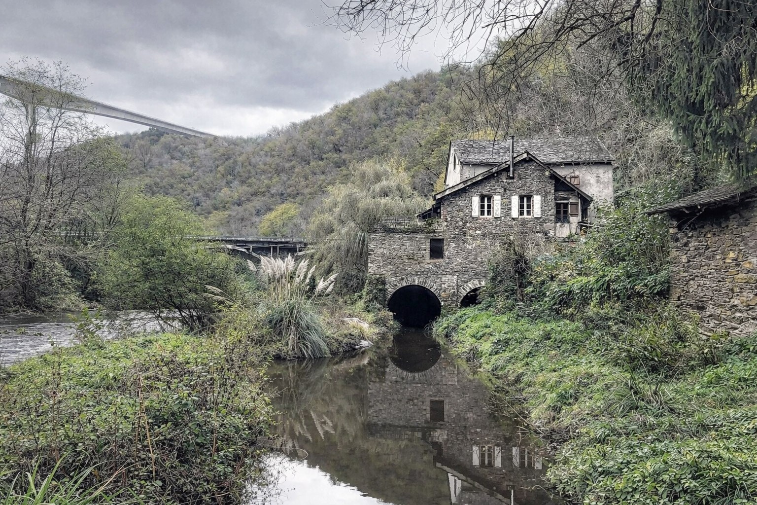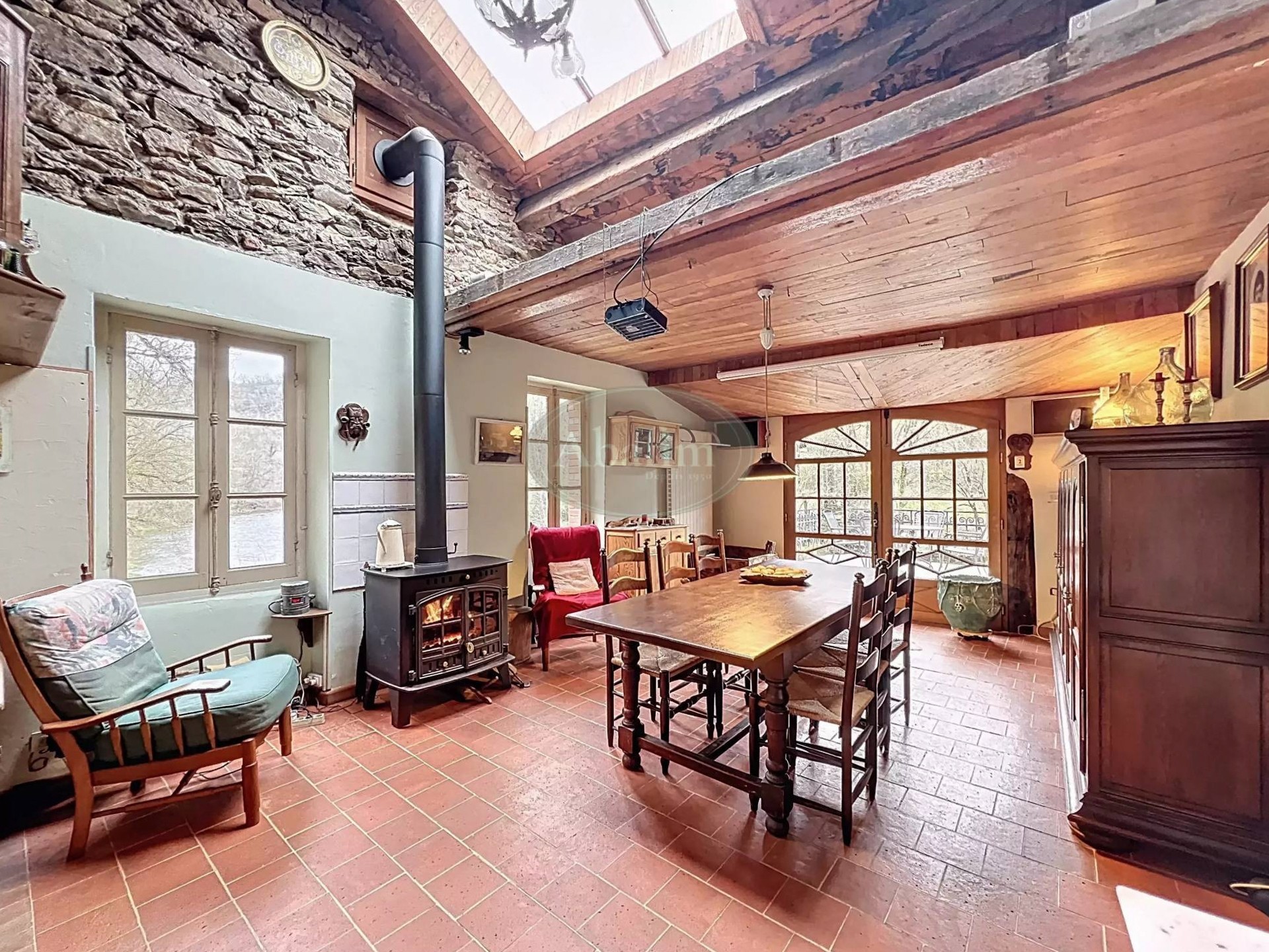 Situated at the head of a reservoir on nearly 6,000 m² of wooded terrain, this 16th-century mill lies midway between Albi and Rodez. While easily accessible via a major north-south transport axis, the valley floor itself can only be reached on foot, by bicycle, or by water. The property features a 40-metre waterfall on-site; further downstream, the Viaur river enters a gorge with depths of up to 80 metres.