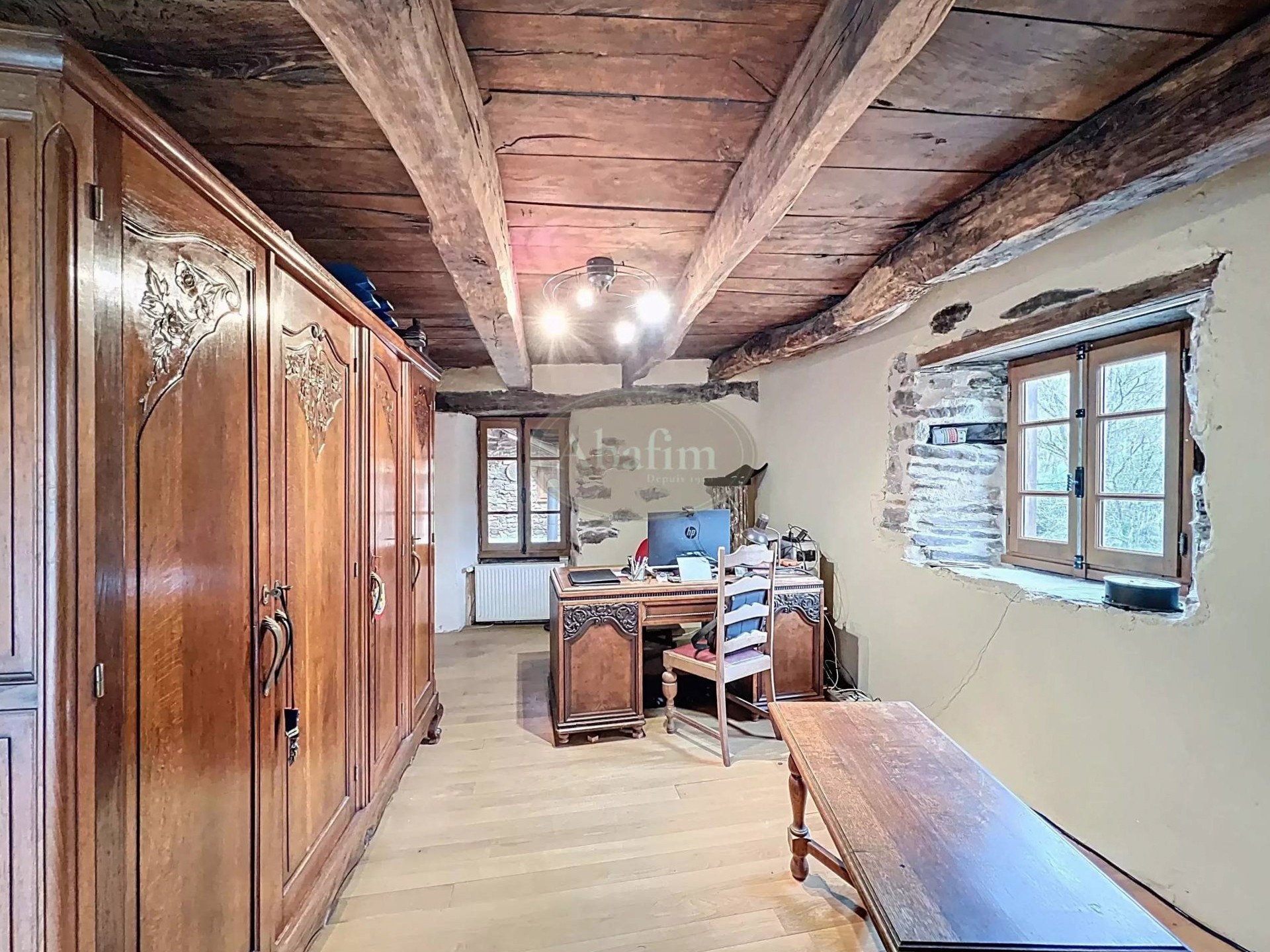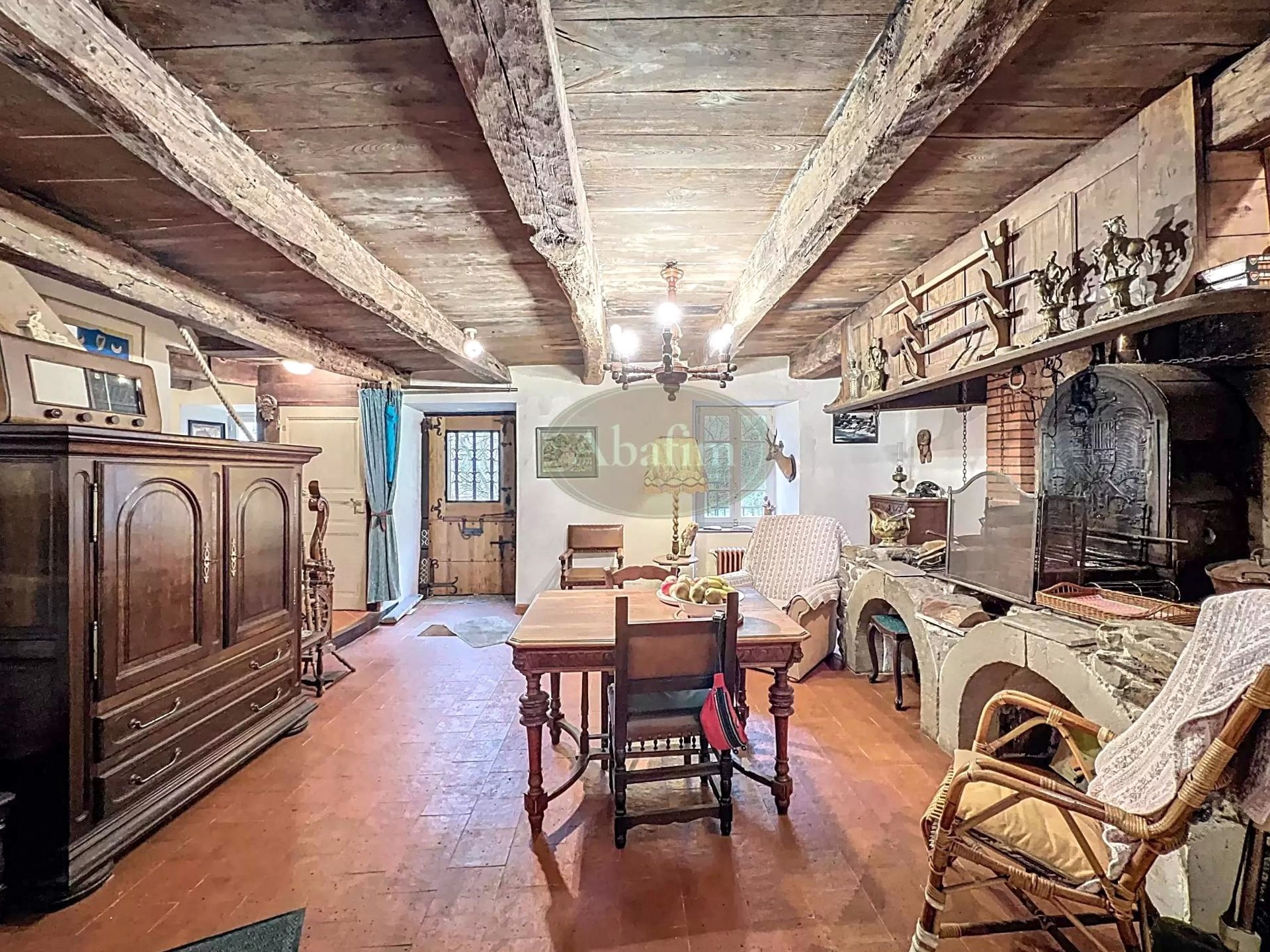 The property is equipped with oil and wood-fired central heating and is connected to the national grid. Water is supplied via a 12-metre borehole, and there is a private wastewater treatment plant. Internet is connected with an internal wired network. The site offers clear potential for hydroelectric power generation.